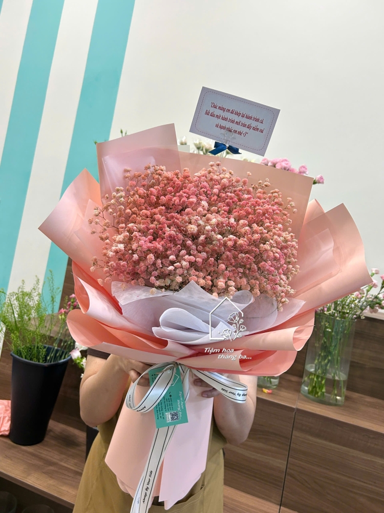 Không cần đến những bông hoa cầu kỳ hay rực rỡ, đôi khi vẻ đẹp giản đơn lại khiến trái tim rung động nhiều nhất. Bó hoa baby hồng là minh chứng cho điều đó – một bó hoa nhỏ nhắn nhưng chứa đựng cả bầu trời yêu thương.