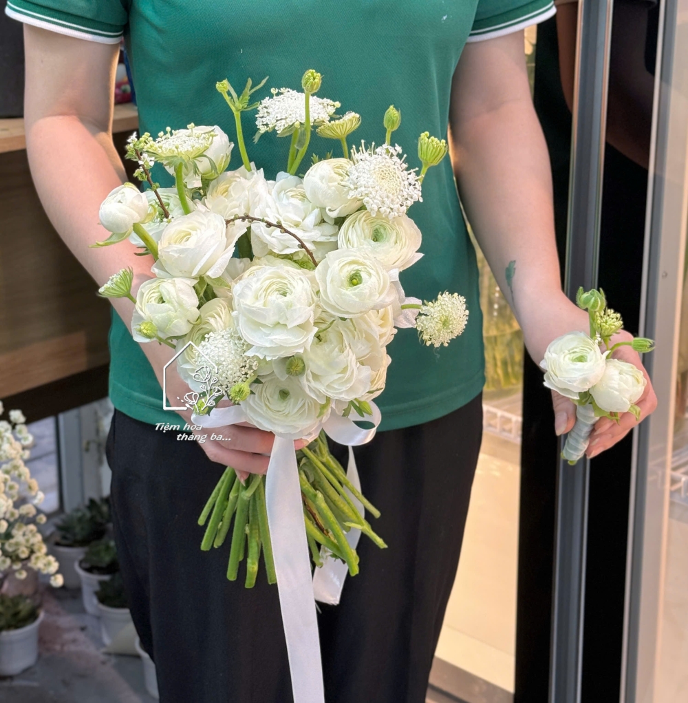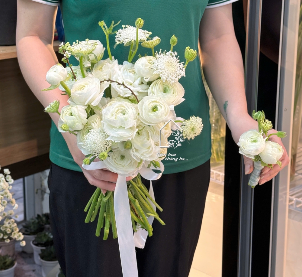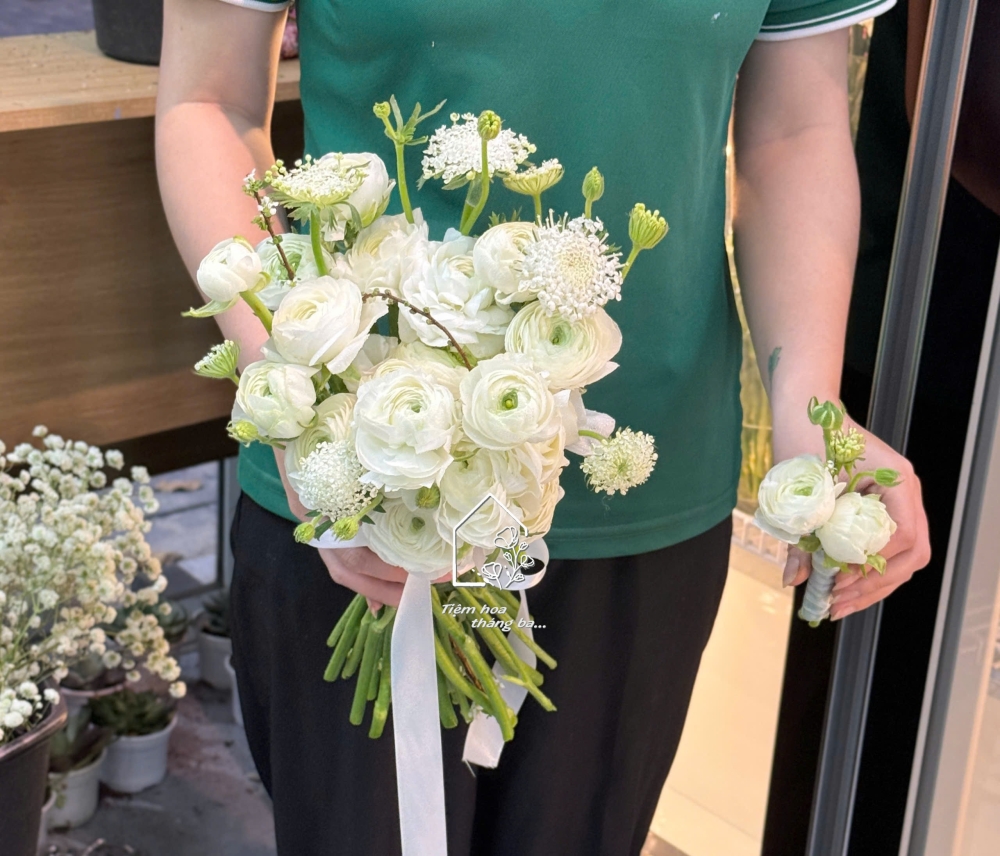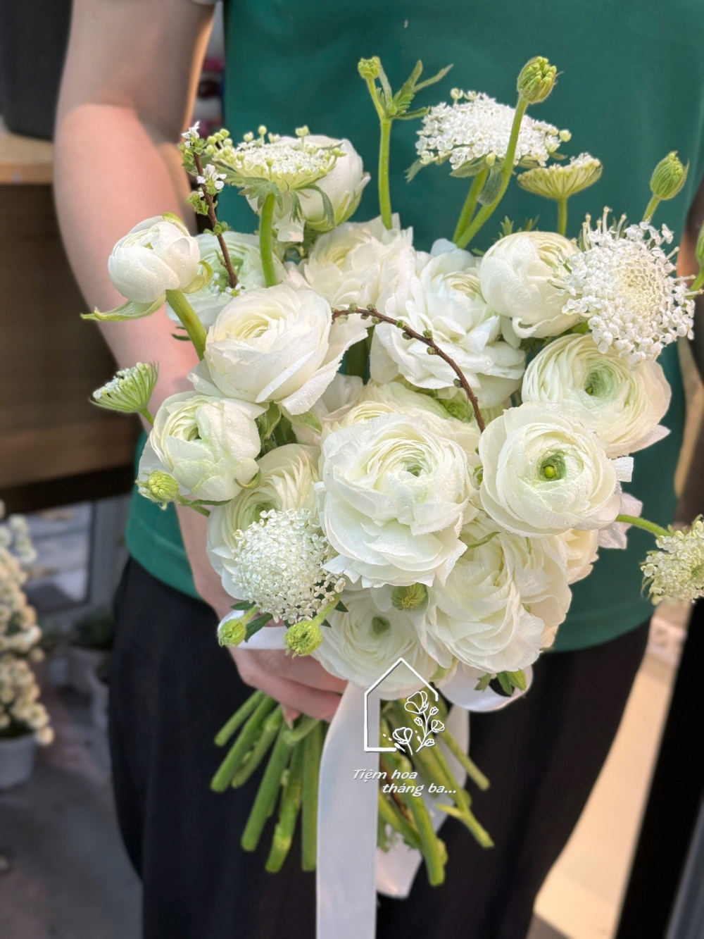 Bó hoa cưới mao lương trắng là biểu tượng của sự tinh khiết, thanh cao và tình yêu bền vững mix cùng thúy châu, mang đến vẻ đẹp nhẹ nhàng nhưng vô cùng cuốn hút cho cô dâu trong ngày trọng đại. Với những cánh hoa mỏng manh xếp tầng mềm mại, mao lương trắng luôn được các cô dâu yêu thích bởi nét đẹp tự nhiên, thanh lịch và rất “nàng thơ”.