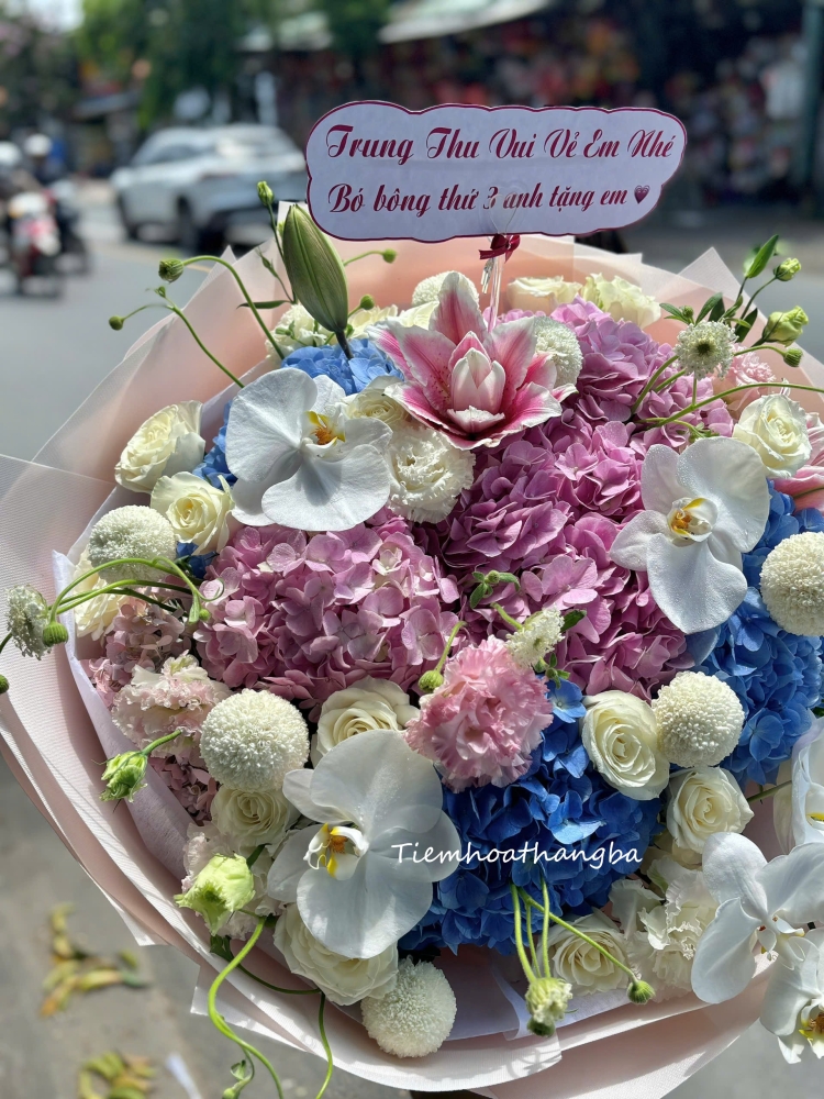 Tất cả được hòa quyện trong sắc độ hài hòa, tạo nên một bó hoa khổng lồ vừa lộng lẫy, vừa thanh lịch – như lời chúc tốt đẹp nhất gửi đến người nhận trong những dịp thật đặc biệt: khai trương, sinh nhật, lễ kỷ niệm, hoặc ngày trọng đại trong đời.