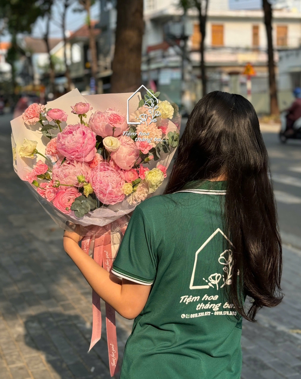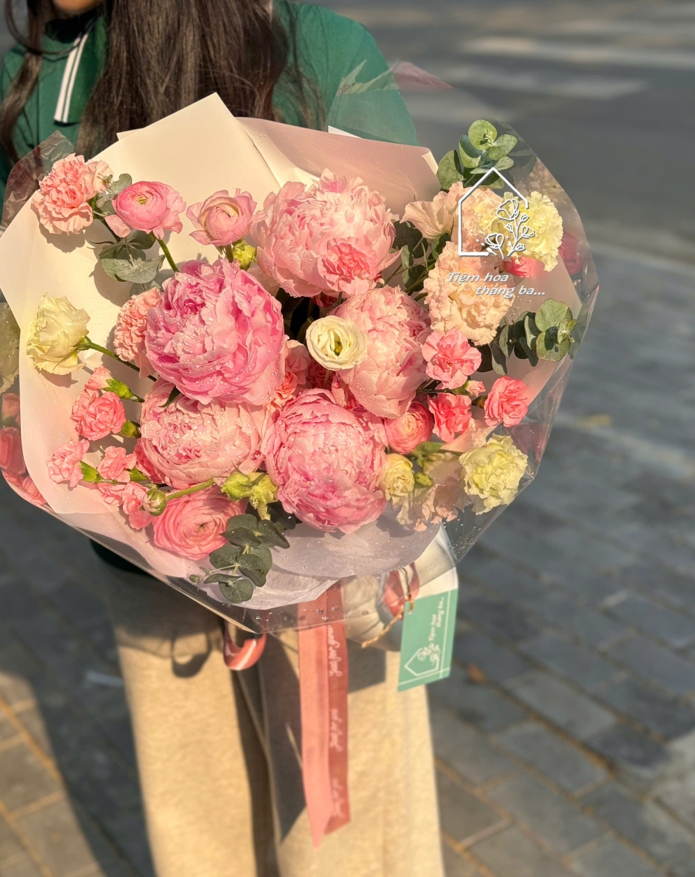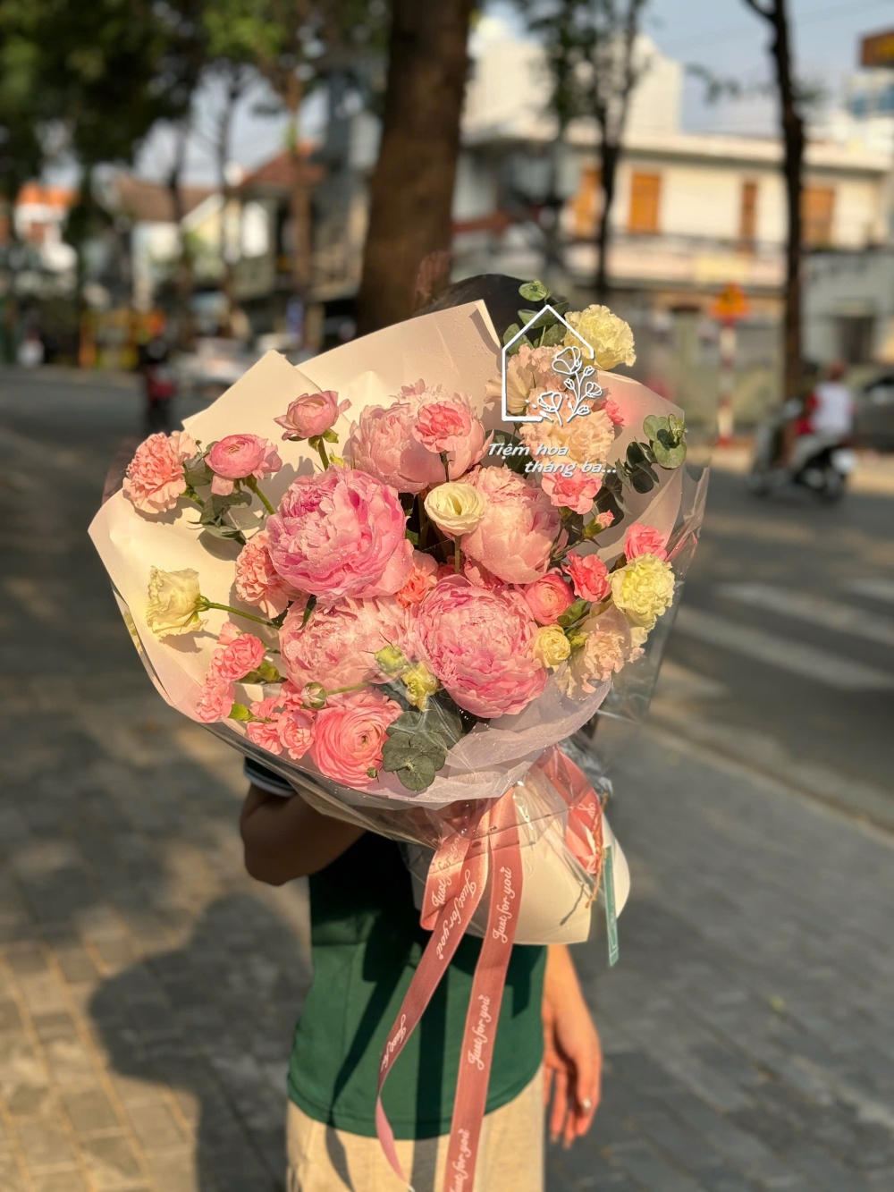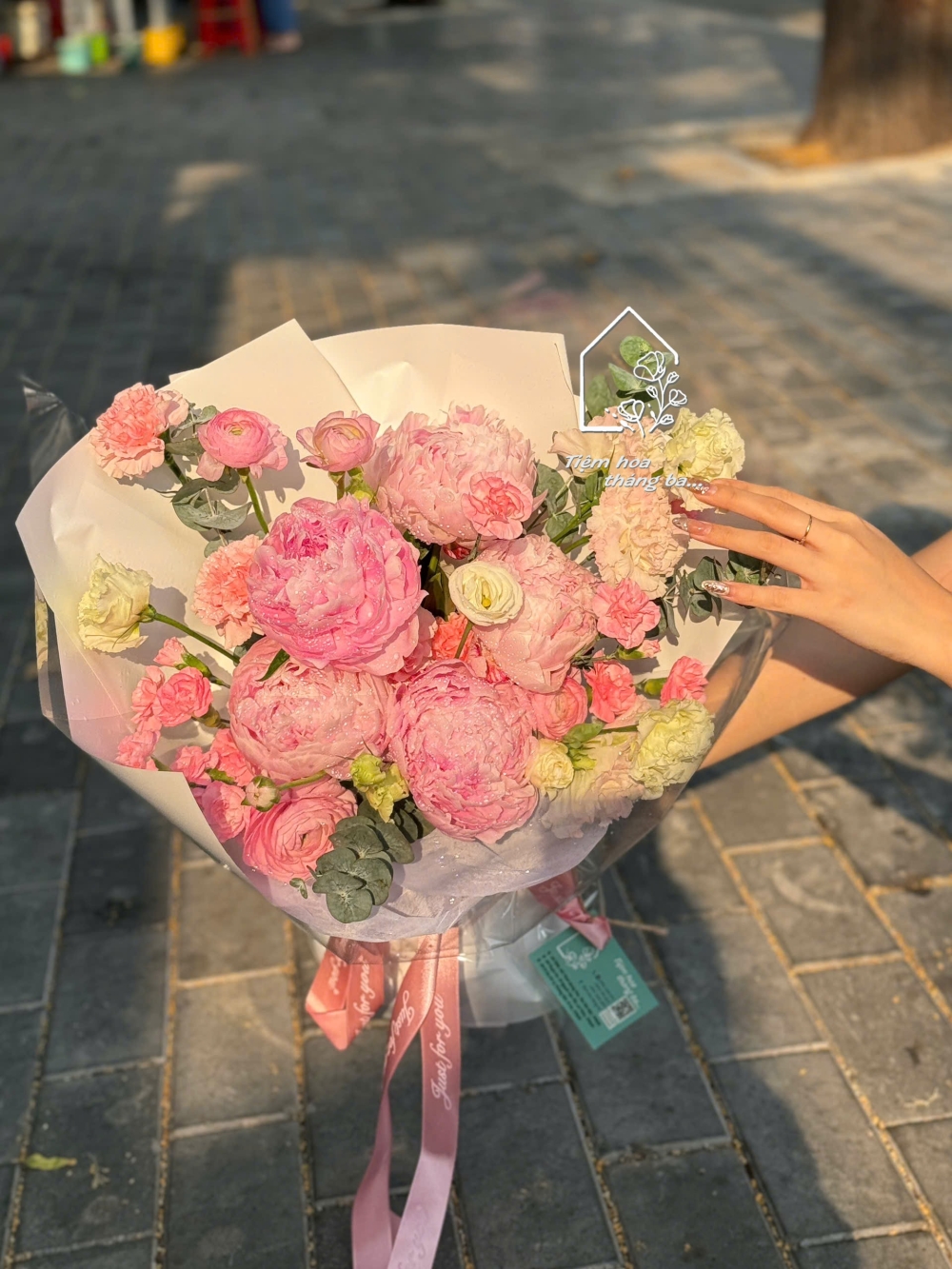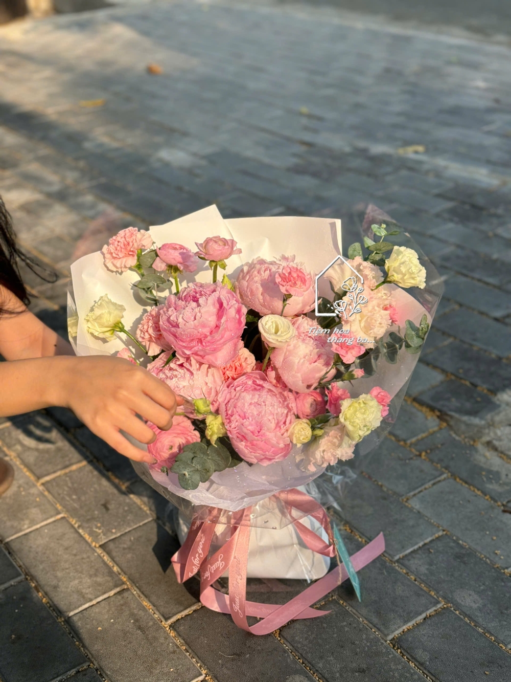 Bó hoa peony hồng là hiện thân của vẻ đẹp dịu dàng, tinh tế và đầy cảm xúc. Với những cánh hoa mềm mại, bung nở tự nhiên, peony luôn mang đến cảm giác ngọt ngào và cuốn hút một cách rất riêng.