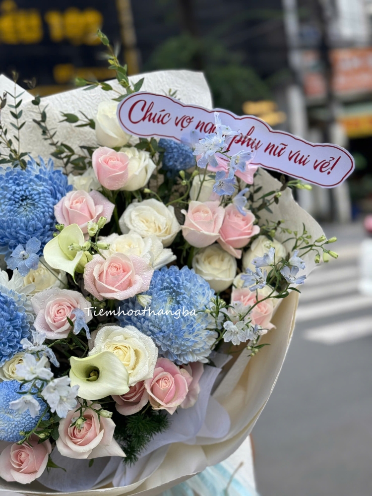 Tiệm có nhận thiết kế hoa tươi theo yêu cầu, bạn có thể cho tiệm biết bạn cần đặt hoa cho dịp gì, tông màu bạn muốn là gì, ngân sách của bạn ra sao, tiệm sẽ thiết kế theo yêu cầu của bạn nhé! Tiệm miễn phí thiết kế banner, thiệp mừng, tiệm giao hoa tận nơi, miễn ship đơn từ 500k bán kính 5km.