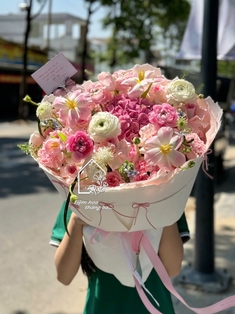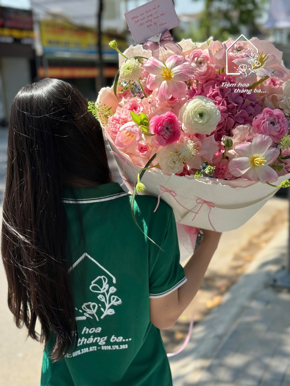 Tiệm có nhận thiết kế hoa tươi theo yêu cầu, bạn có thể cho tiệm biết bạn cần đặt hoa cho dịp gì, tông màu bạn muốn là gì, ngân sách của bạn ra sao, tiệm sẽ thiết kế theo yêu cầu của bạn nhé! Tiệm miễn phí thiết kế banner, thiệp mừng, tiệm giao hoa tận nơi, miễn ship đơn từ 500k bán kính 5km.