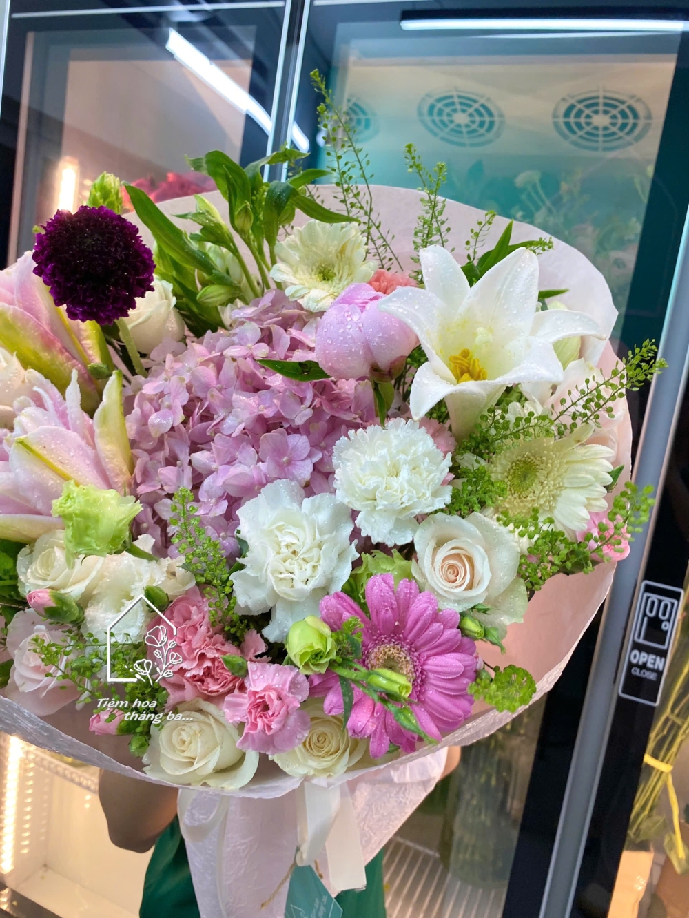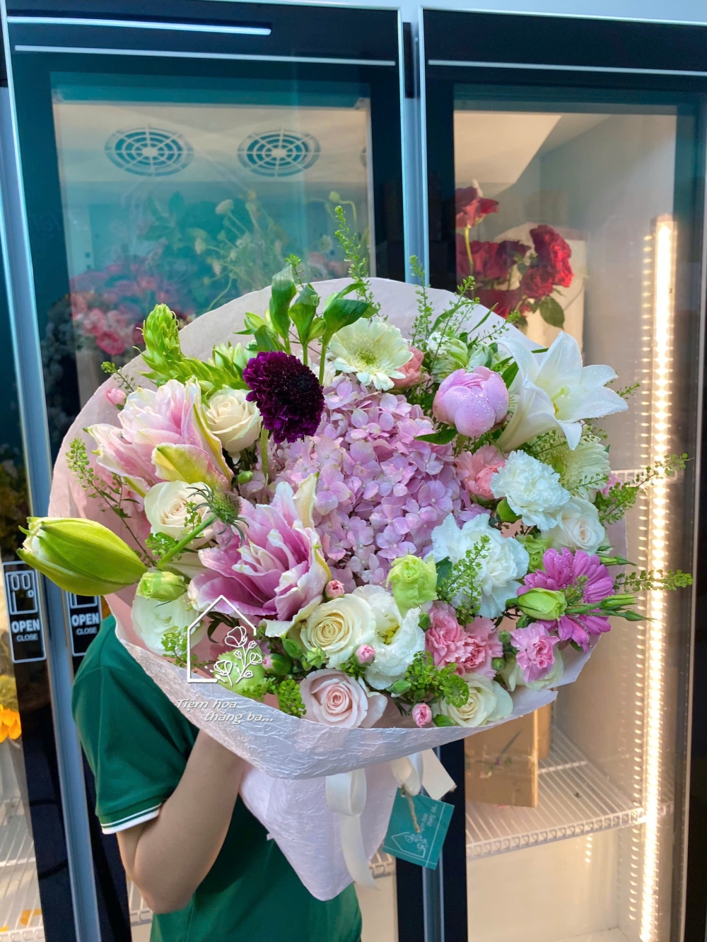 Tiệm có nhận thiết kế hoa tươi theo yêu cầu, bạn có thể cho tiệm biết bạn cần đặt hoa cho dịp gì, tông màu bạn muốn là gì, ngân sách của bạn ra sao, tiệm sẽ thiết kế theo yêu cầu của bạn nhé! Tiệm miễn phí thiết kế banner, thiệp mừng, tiệm giao hoa tận nơi, miễn ship đơn từ 500k bán kính 5km.