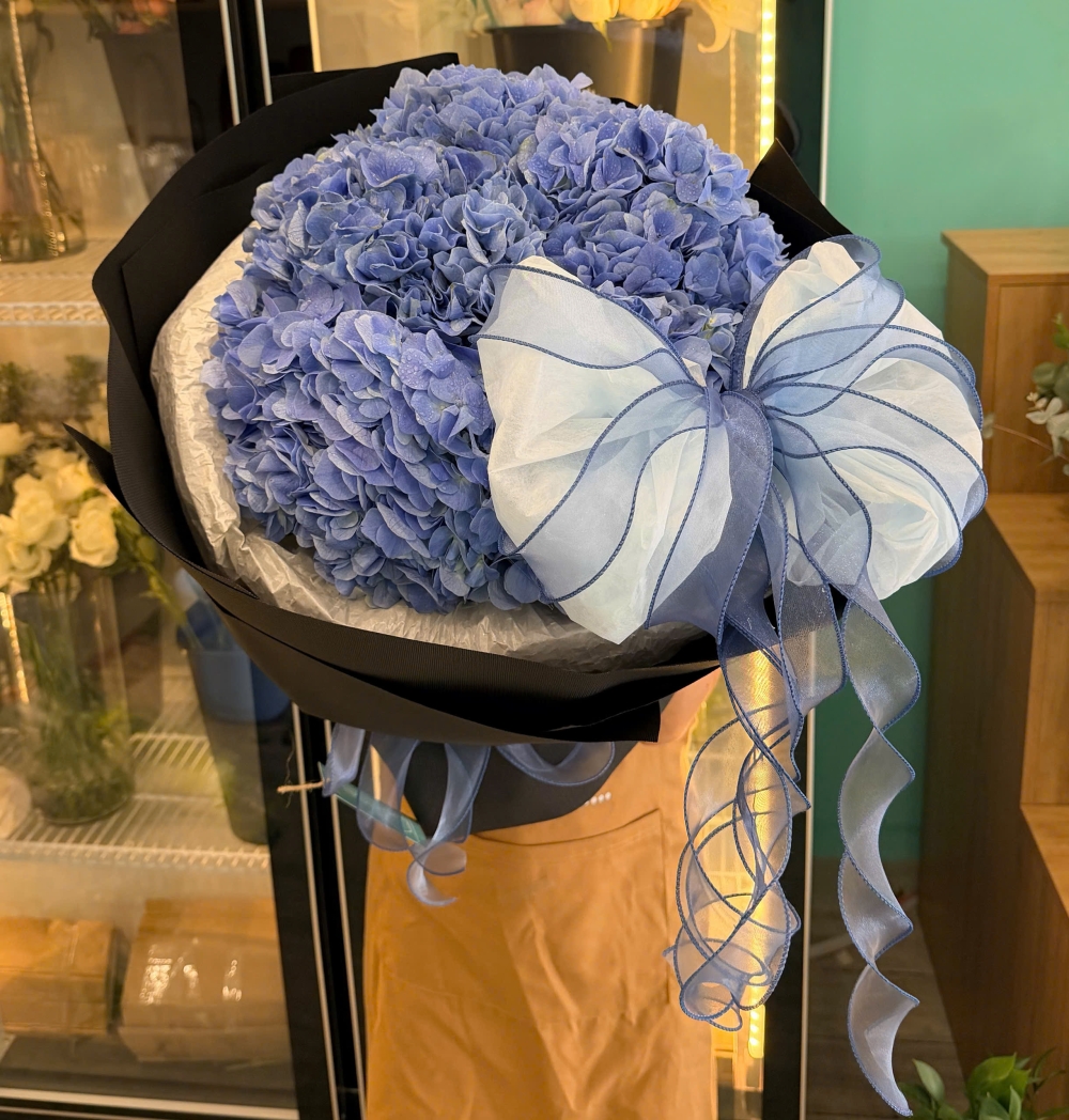 Sắc xanh của tú cầu không quá rực rỡ mà mang nét dịu mát, tượng trưng cho sự bình yên, hy vọng và những cảm xúc chân thành. Đây là tone màu rất phù hợp để gửi tặng người yêu, bạn bè hoặc người thân trong những dịp đặc biệt như sinh nhật, kỷ niệm hay đơn giản là một ngày bạn muốn ai đó mỉm cười.