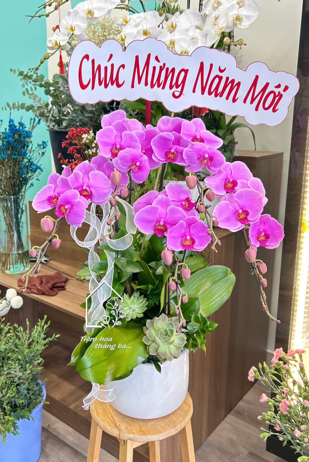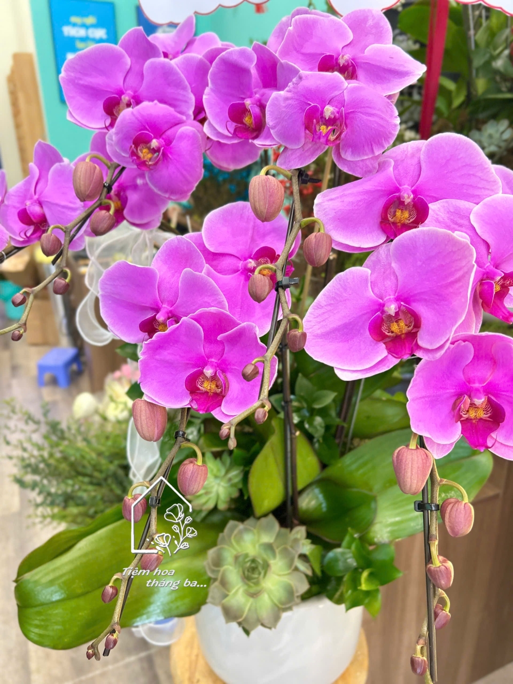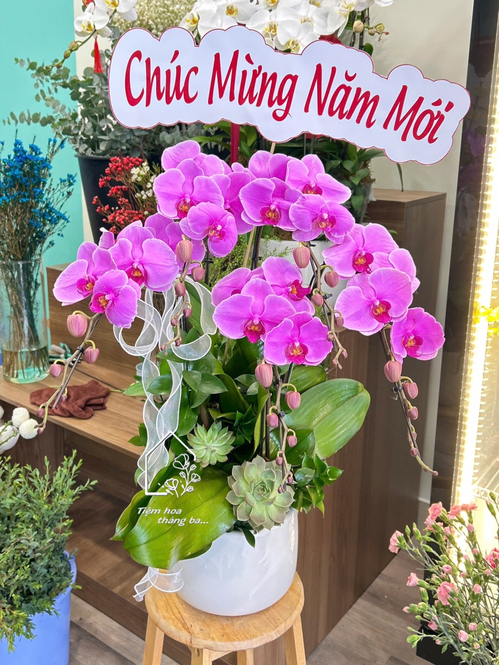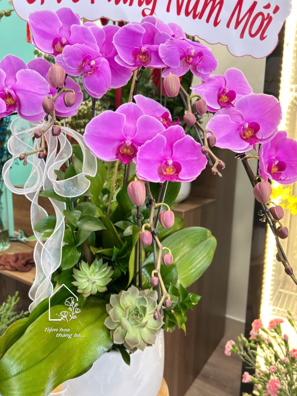 Chậu lan hồ điệp hồng mang vẻ đẹp mềm mại, nữ tính nhưng vẫn rất thanh lịch. Những cánh lan uốn cong nhẹ nhàng như cánh bướm, xếp lớp tinh tế tạo nên tổng thể hài hòa và cuốn hút.