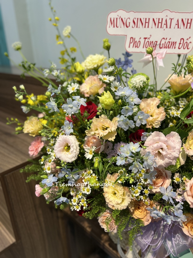 Tiệm có nhận thiết kế hoa tươi theo yêu cầu, bạn có thể cho tiệm biết bạn cần đặt hoa cho dịp gì, tông màu bạn muốn là gì, ngân sách của bạn ra sao, tiệm sẽ thiết kế theo yêu cầu của bạn nhé! Tiệm miễn phí thiết kế banner, thiệp mừng, tiệm giao hoa tận nơi, miễn ship đơn từ 500k bán kính 5km.