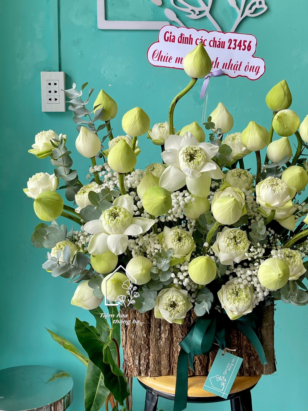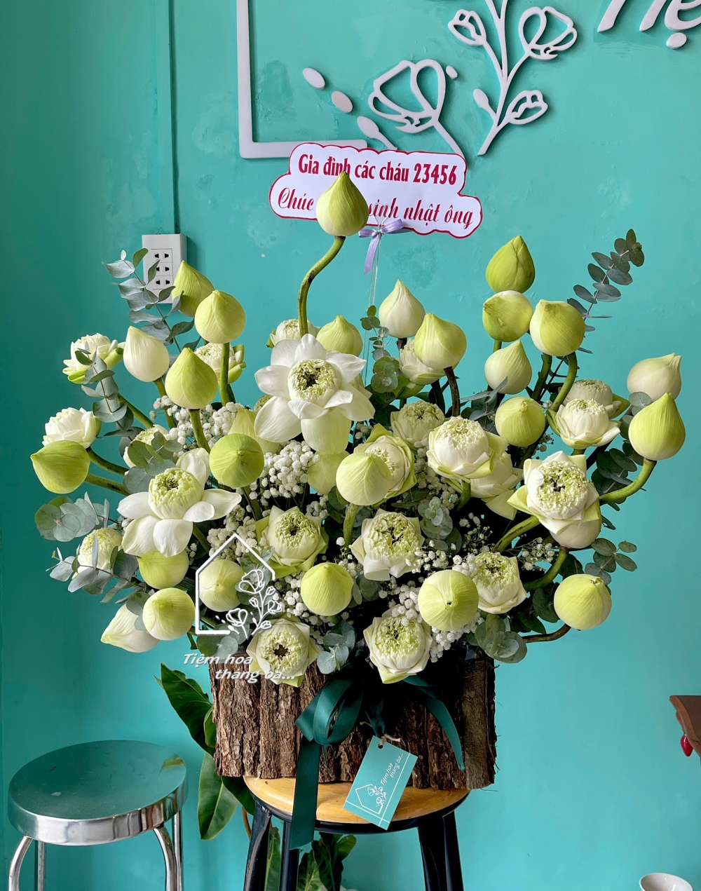 Giỏ hoa sen trắng mang vẻ đẹp thanh tao, nhẹ nhàng và sâu lắng, là lựa chọn tinh tế để gửi gắm sự bình yên, lòng kính trọng và những cảm xúc chân thành.