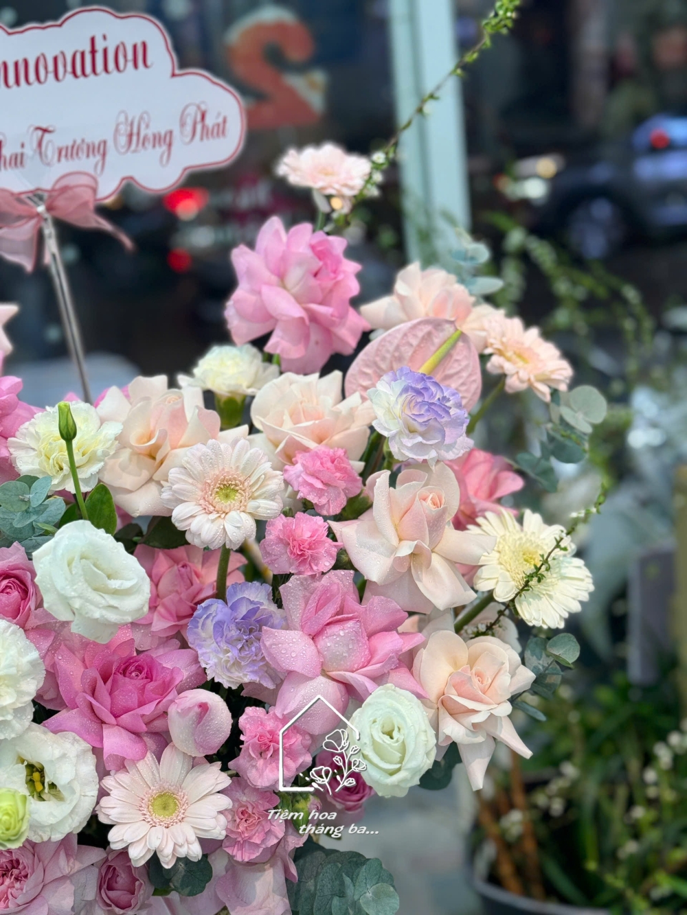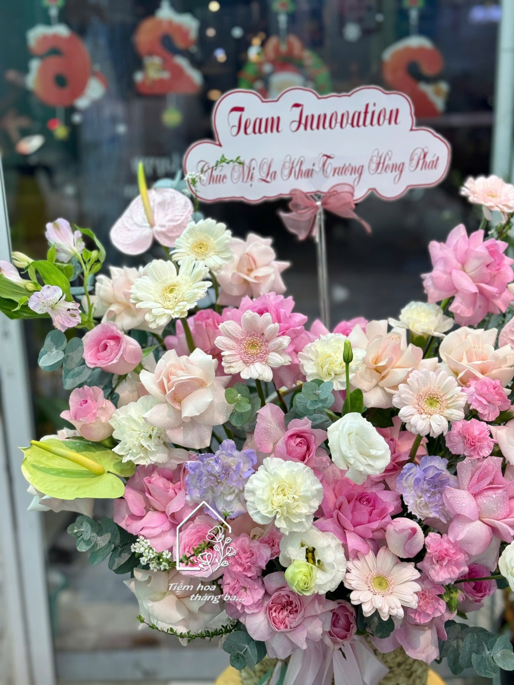Tiệm có nhận thiết kế hoa tươi theo yêu cầu, bạn có thể cho tiệm biết bạn cần đặt hoa cho dịp gì, tông màu bạn muốn là gì, ngân sách của bạn ra sao, tiệm sẽ thiết kế theo yêu cầu của bạn nhé! Tiệm miễn phí thiết kế banner, thiệp mừng, tiệm giao hoa tận nơi, miễn ship đơn từ 500k bán kính 5km.