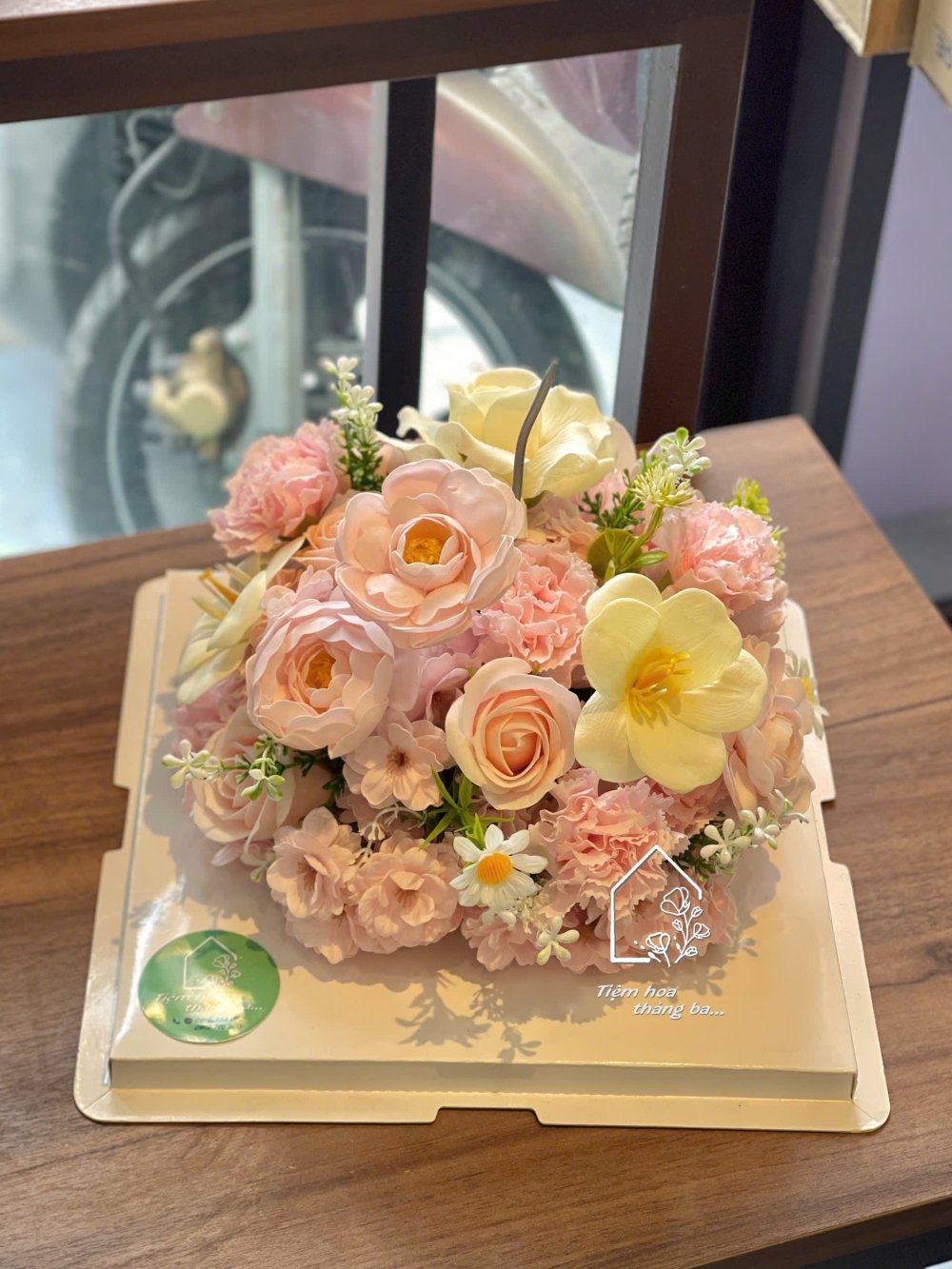 Hoa thiết kế thủ công, sẽ tương tự mẫu 80-90%. Chụp ảnh trước và sau khi giao hoa.