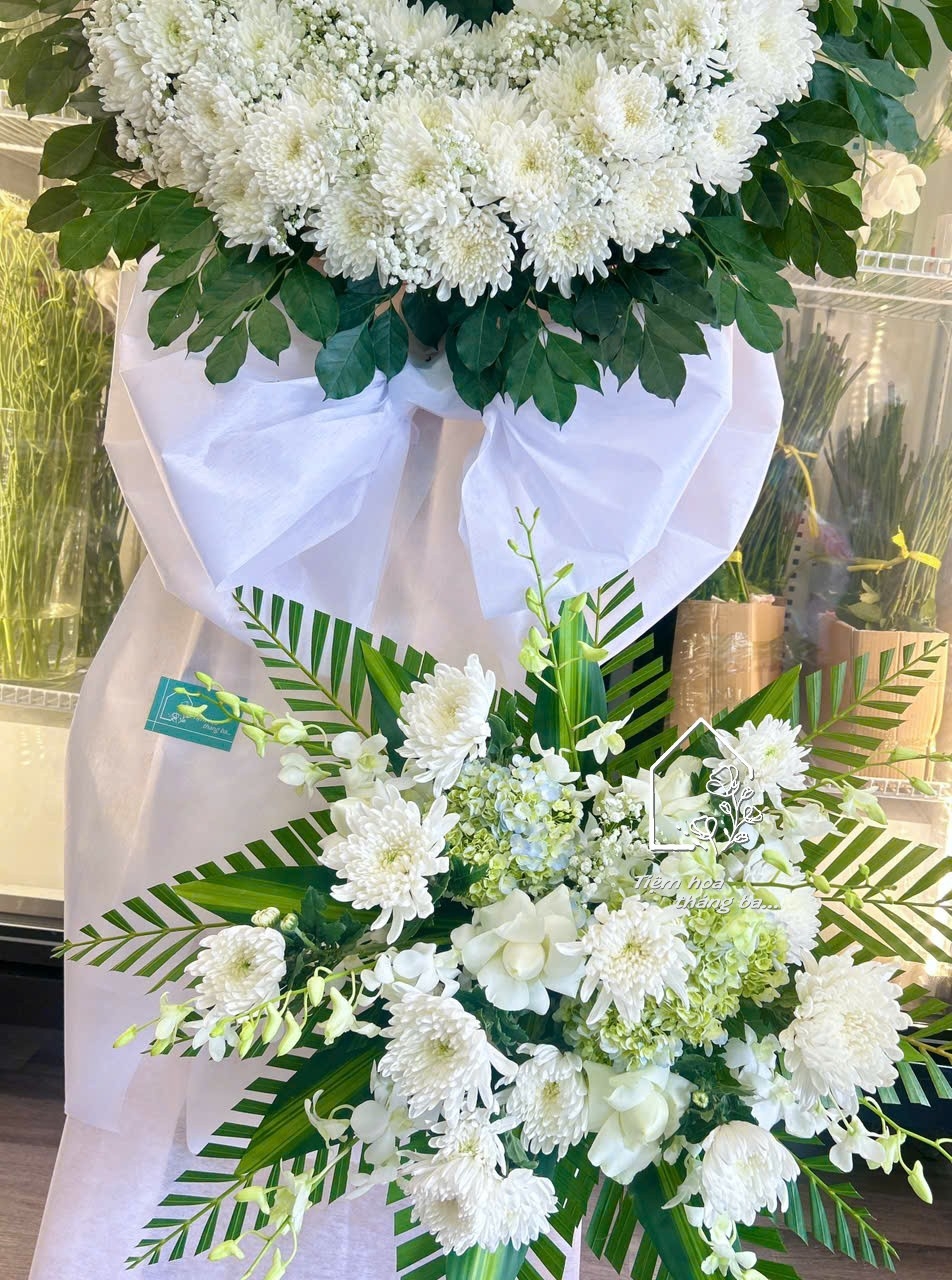 Kệ hoa chia buồn tone trắng là lựa chọn phù hợp để thể hiện sự cảm thông, kính trọng và lời tiễn biệt nhẹ nhàng. Với gam màu trắng chủ đạo, kệ hoa mang đến cảm giác bình yên, tinh khiết và đầy sự sẻ chia trong những thời khắc đặc biệt.