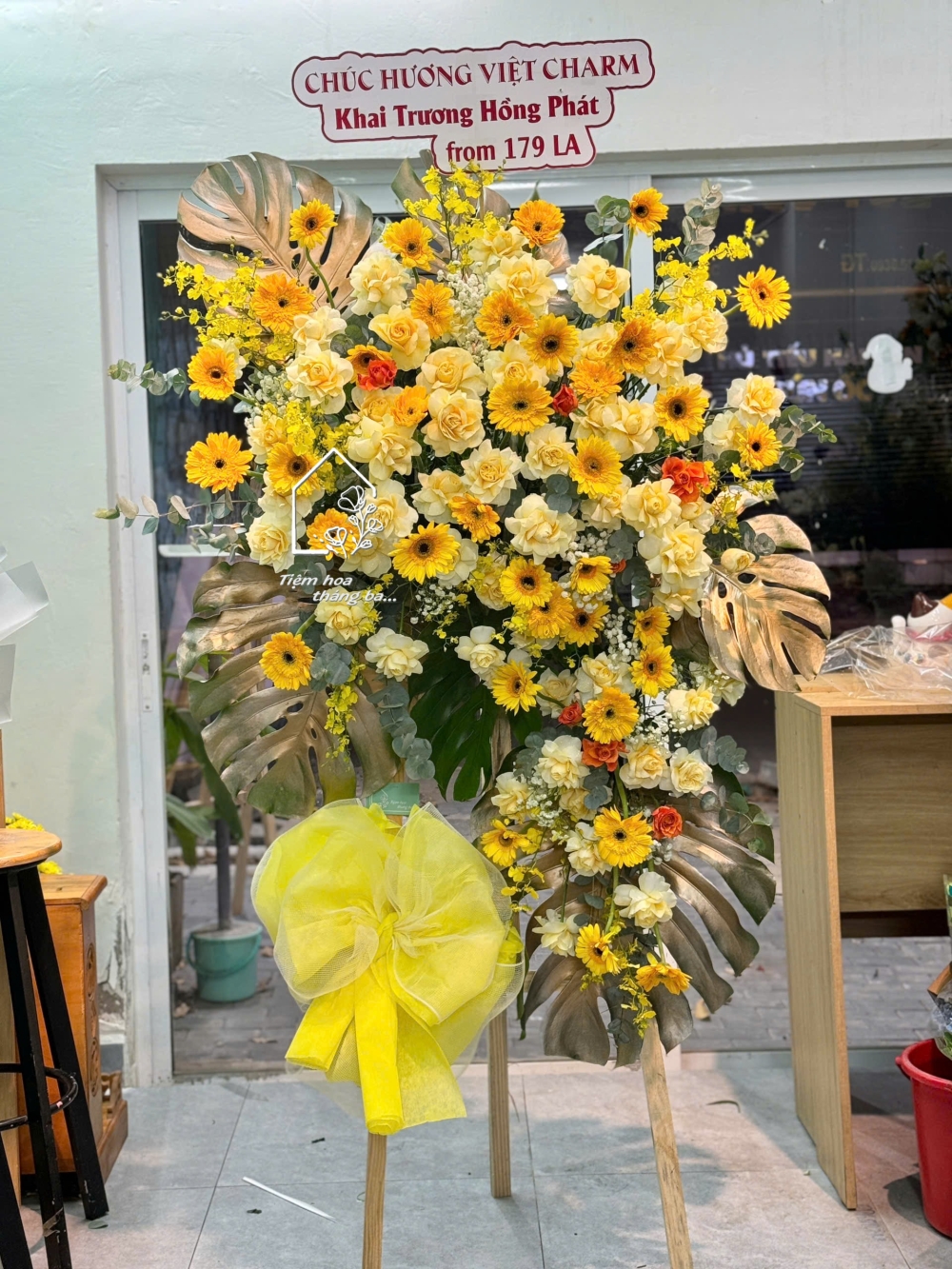 Kệ Hoa Chúc Mừng Tone Vàng – Rực Rỡ & Nổi Bật