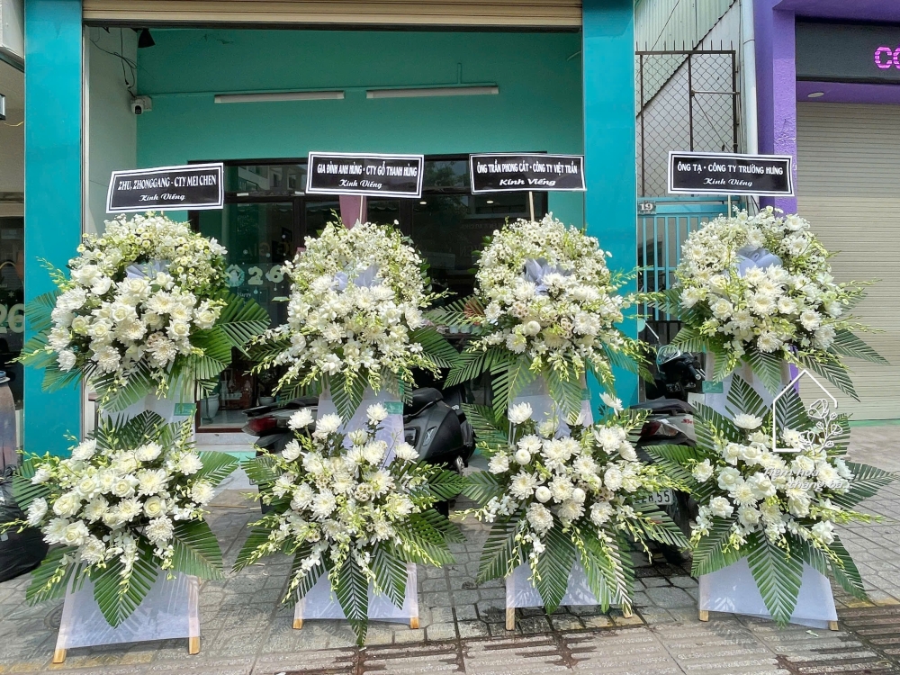 Trong những giây phút tiễn đưa đầy lặng lẽ, kệ hoa viếng tone trắng như một biểu tượng của sự tinh khiết và lòng thành kính. Sắc trắng không chỉ đại diện cho sự thanh cao, mà còn là lời cầu chúc cho người đã khuất được an yên, nhẹ nhàng rời xa trần thế.