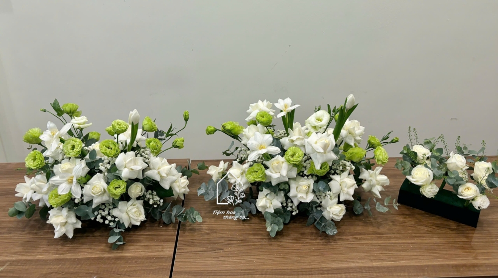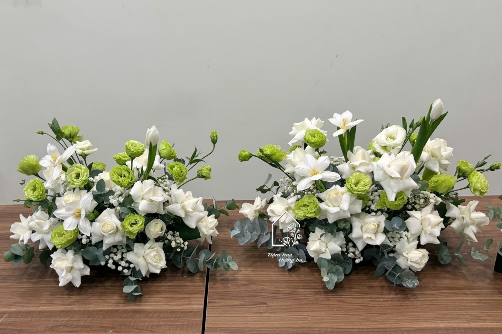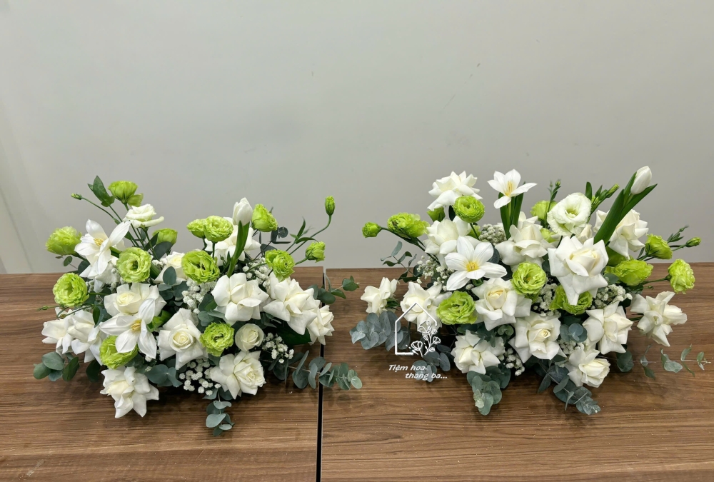 Không gian hội nghị luôn cần sự nhã nhặn và tinh tế — nơi mỗi chi tiết trang trí đều góp phần tạo nên phong thái chuyên nghiệp. Và ụ hoa hội nghị tone xanh – trắng mix tulip chính là lựa chọn hoàn hảo cho điều đó.